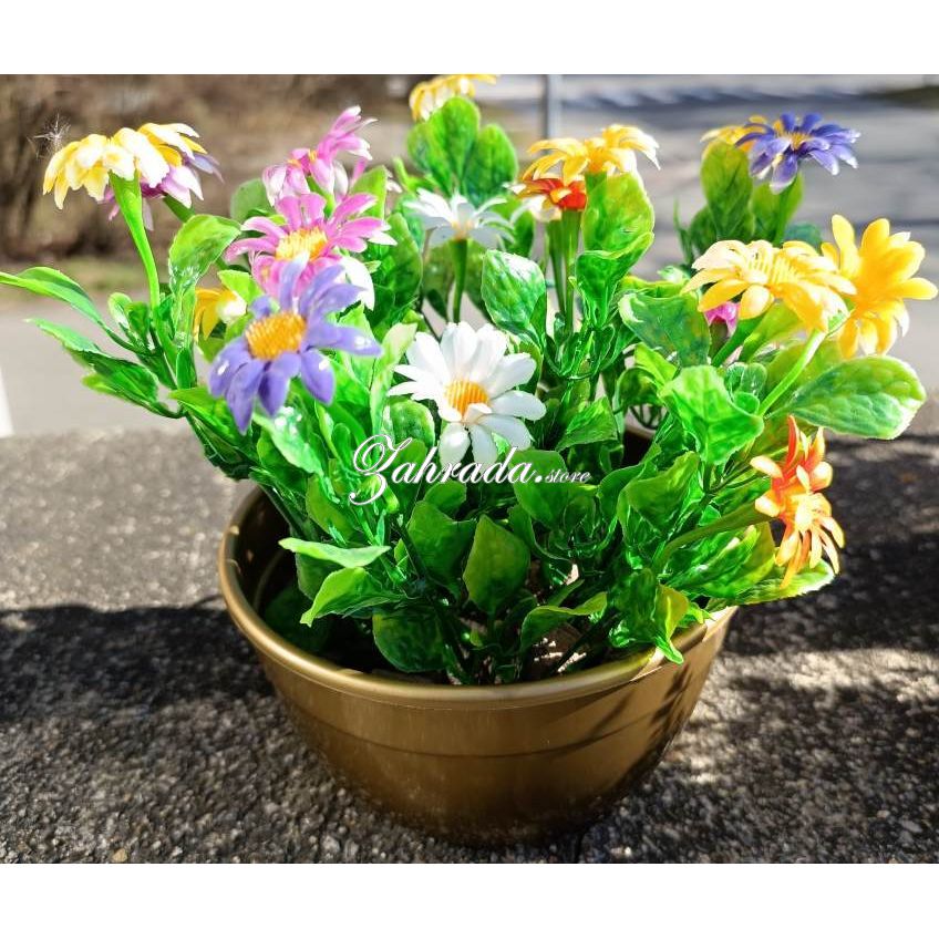 - vazba z umělých květin v misce